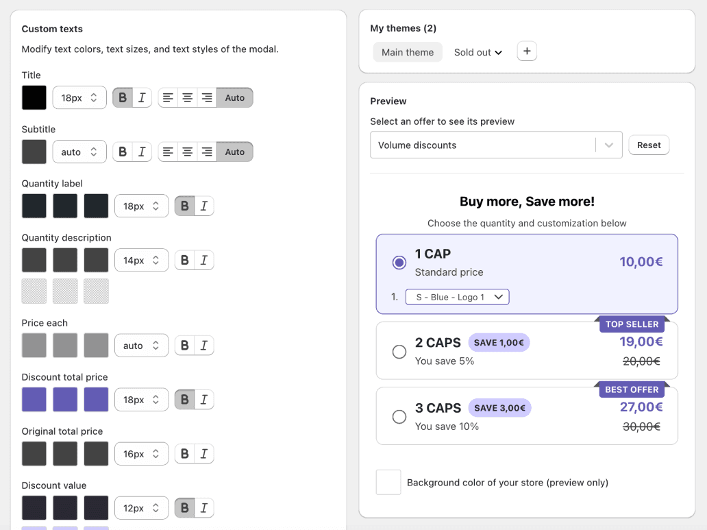Increase your average order value with fully-customizable quantity breaks and bundles.